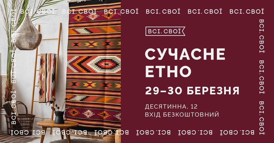 Цього разу "Всі. Свої" проведуть маркет, який не залишить шансів не закохатися в українське! На Десятинній, 12, тебе чекають талановиті майстри та досвідчені ремісники, великі бренди й маленькі мануфактури. Вони вивчають старовинні техніки та вдихають сучасне життя у призабуті ремесла.