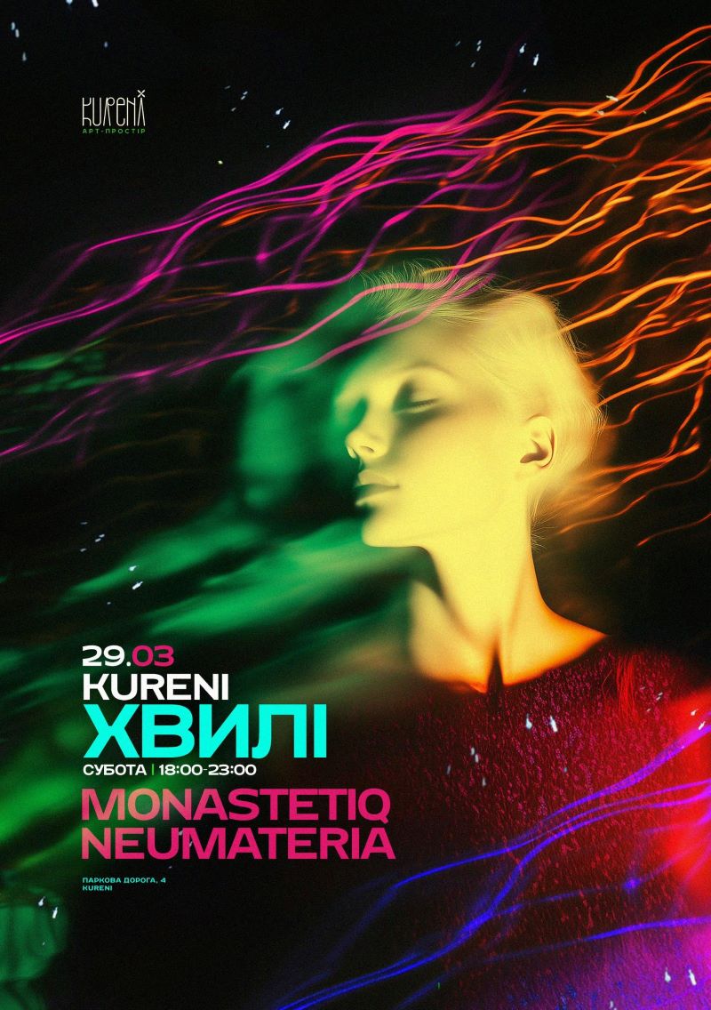 За вікном ще панує мінлива весняна погода, тому KURENI запрошують у простір біля каміна, де затишно і тепло. Про твій настрій подбають MONASTETIQ — електронний проєкт, що давно вийшов за межі сцени й став колом однодумців, і NEUMATERIA — продюсер і лайв-виконавець, чиї треки звучать без пафосу та надмірностей.