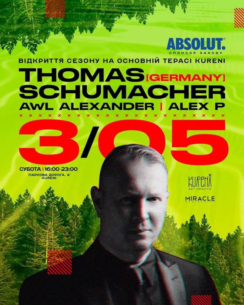 Допоможуть у цьому THOMAS SCHUMACHER — легенда техно-сцени з Берліна, артист, який формує звук уже понад 25 років, а також Awl Alexandrer та Ksena — зі своїм баченням музики.