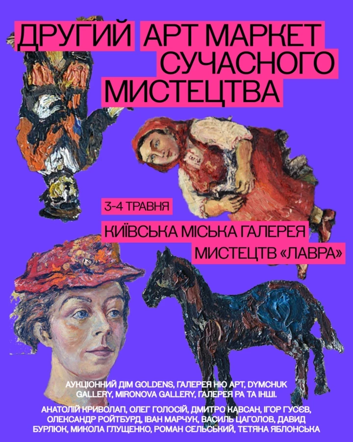 У другому всеукраїнському Арт Маркеті сучасного мистецтва візьмуть участь найкращі проєкти українських та міжнародних галерей. Тут будуть представлені роботи відомих художників, мистецтво яких знане за межами України: Анатолія Криволапа, Олега Голосія, Дмитра Кавсана, Ігоря Гусєва, Олександра Ройтбурда, Івана Марчука, Василя Цаголова, Давида Бурлюка, Миколи Глущенка, Романа Сельського та Тетяни Яблонської.
