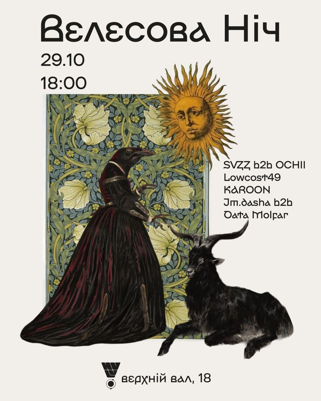 Цієї неділі у Хвильовому об'єднають традиції та концепції декількох споконвічних українських свят в одному вечорі. Аби згадати свою язичницьку сутність та переосмислити її в сучасному єднанні з природними силами. Це буде "Велесова ніч" із містичною музикою й живими співами. У лайн-апі: SVZZ b2b, OCHII, Lowcost49, а ще Karoon, Jm.dasha b2b та Data Molfa