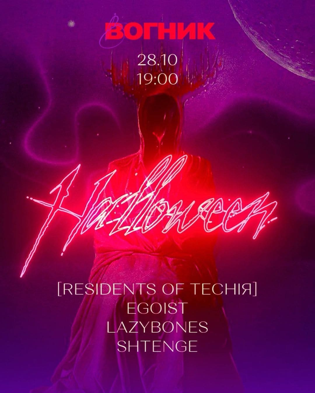 "Вечір усіх святих" цієї суботи проведуть у вікторіанському стилі. Для гостей запросили резидентів музичної формації "TechiЯ": діджеї Egoist, Lazy Bones, Shtenge. Ти почуєш хаус, техно та брейкс.