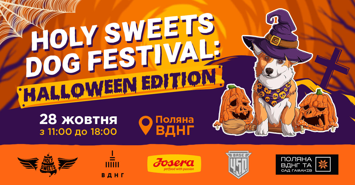 На "Поляні ВДНГ" цієї суботи відбудеться фестиваль Holy Sweets Dog Festival: Halloween edition. На ньому будуть організовані лекції та майстер-класи з дресури, догляду й домедичної ветдопомоги для песиків. Цього дня домашнім улюбленцям влаштують догкорт, а для власників чотирилапих працюватиме фудкорт та ярмарок із різноманітними товарами, а також фотозони. А ще, як зазначають організатори, будуть конкурси, розіграші та лотереї. Вхідний квиток потрібен тільки для песика. Члени родини або друзі до п'яти людей можуть пройти безплатно.