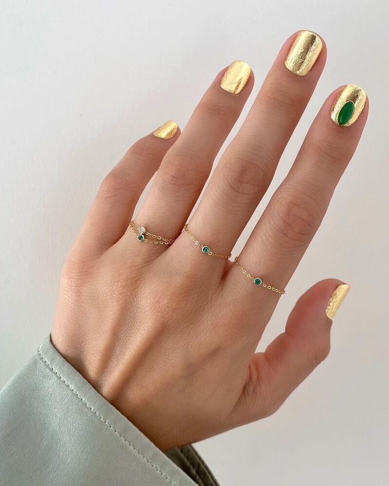 Для різноманітності можна додати трохи шиммера або прикрасити кілька нігтів великими стразами, що нагадують краплини роси, об'ємними чи мінімалістичними малюнками.
