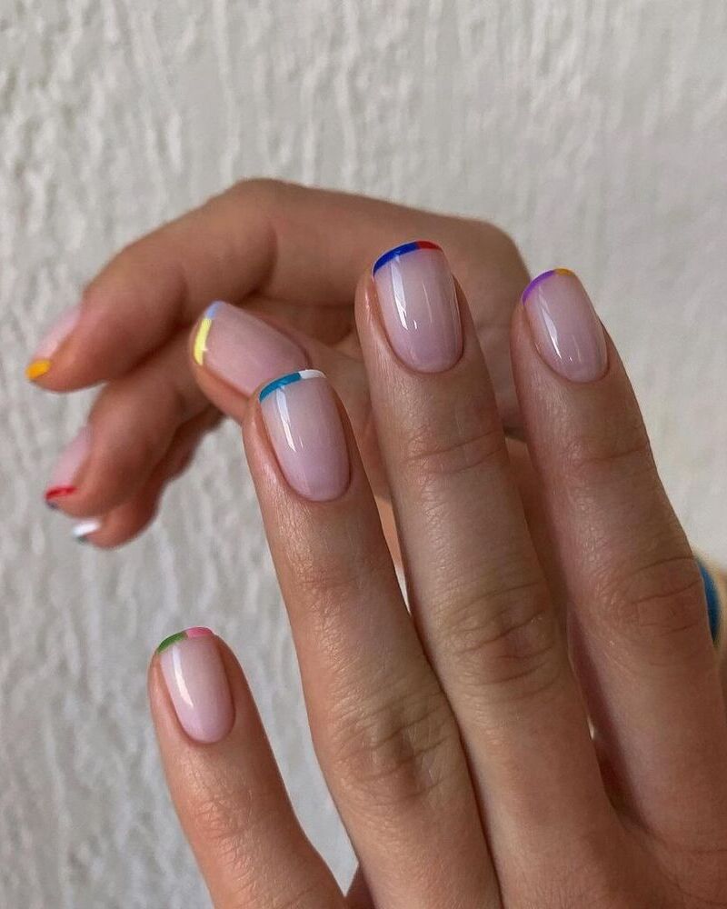 - Френч з кольоровими кінчиками: червоними, лавандовими, синіми, жовтими;