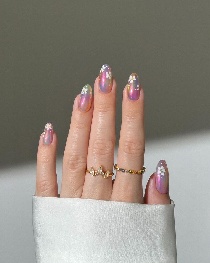 - Флористичні мотиви: об'ємні, реалістичні або акварельні квіткові малюнки, френч із квітами тощо.