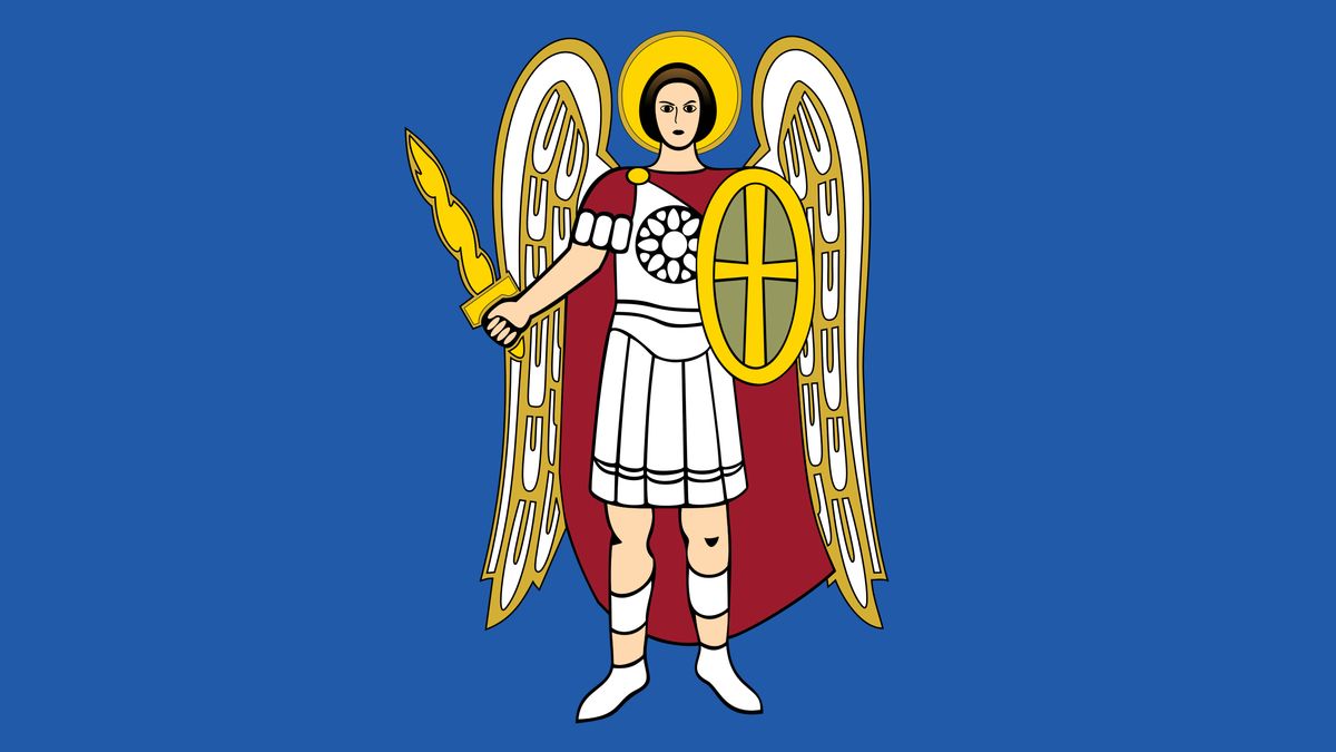 А от архангела Михаїла спочатку зображали на гербі не самого міста, а київських земель. Також войовничий архістратиг був зображений на гербі Київського воєводства у складі Речі Посполитої — срібний на червоному тлі.