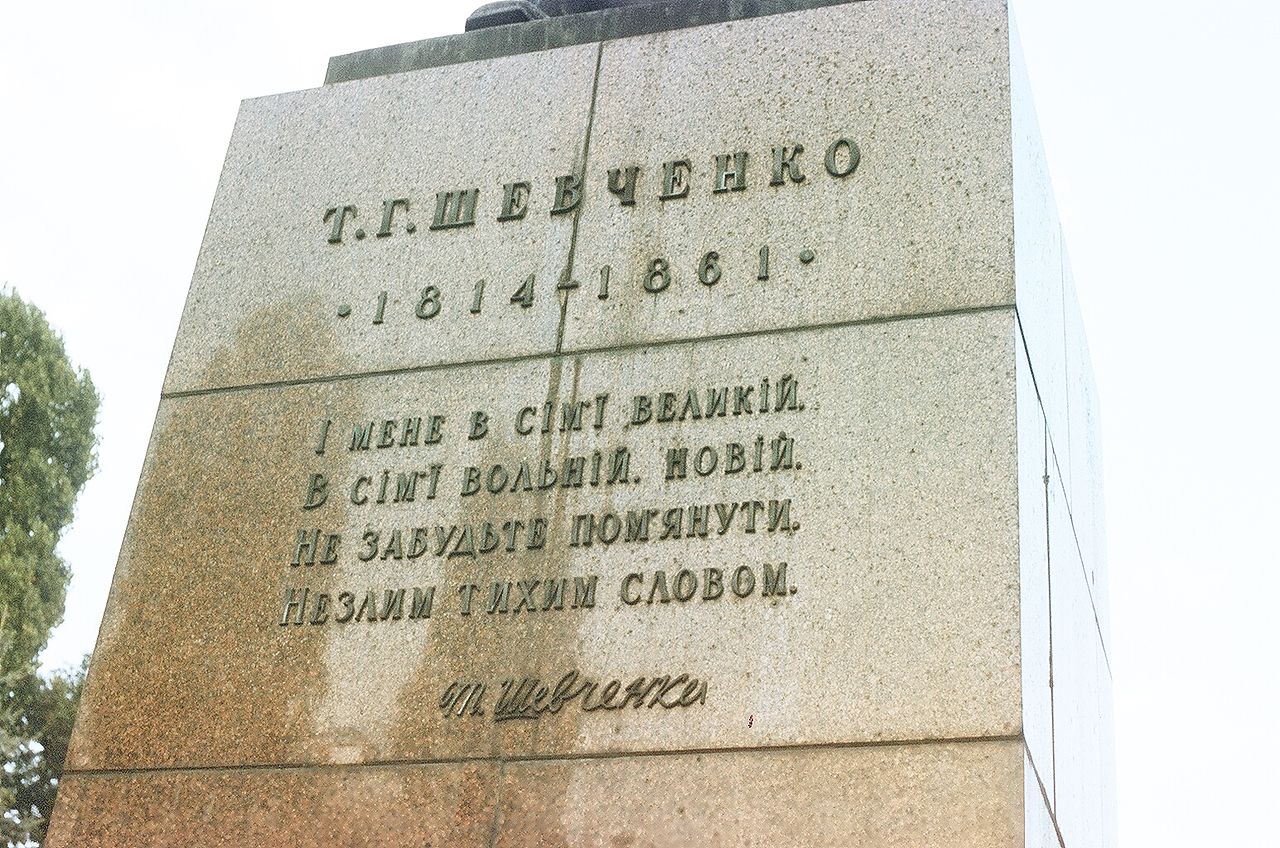 Пам'ятник огороджений щитом та накритий мішками з піском і по сьогодні. Але після перемоги Кобзар неодмінно знову постане в однойменному парку в усій красі!