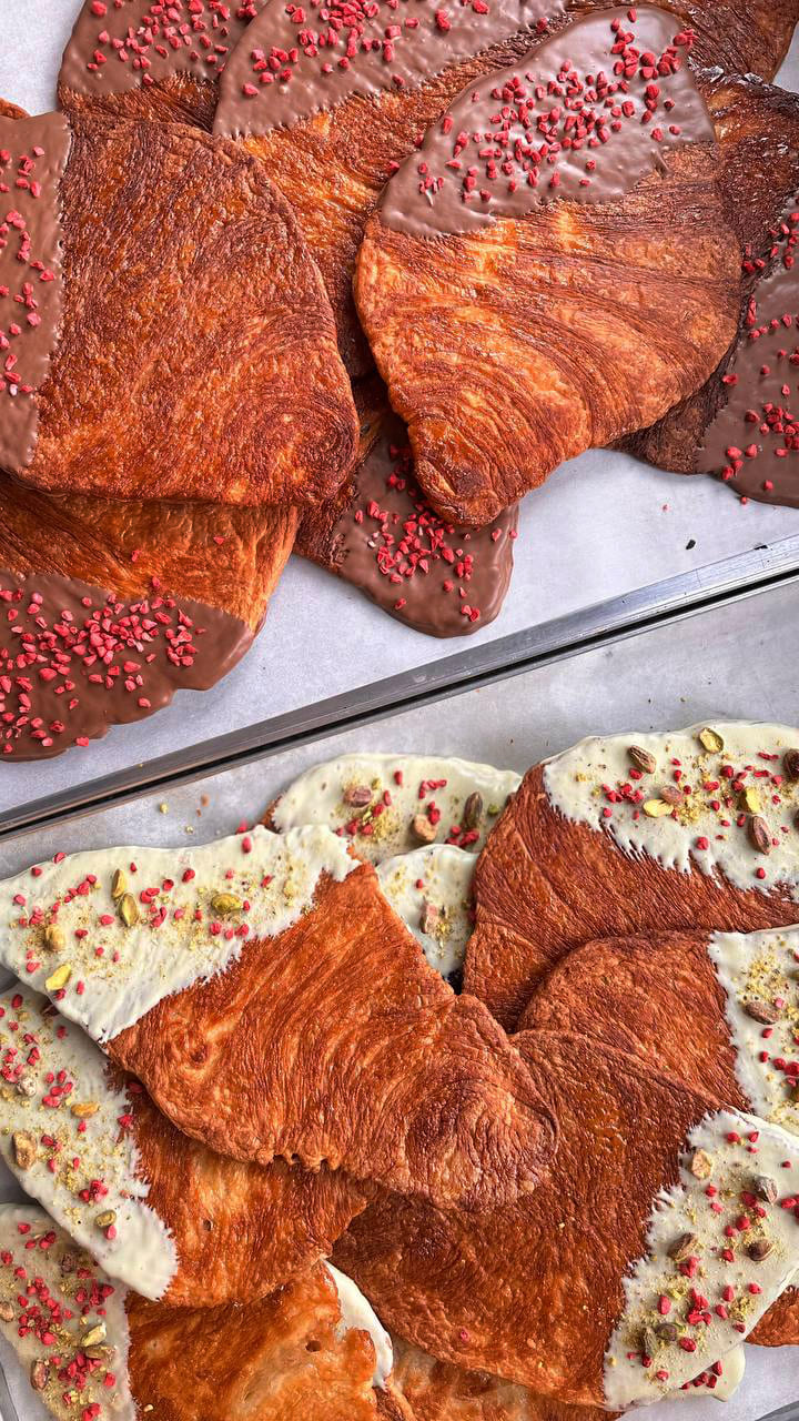 Легендарна київська пекарня-кондитерська WOLKONSKY також пропонує гостям скуштувати трендову випічку. Це пухкий масляний круасан, що за спеціальною технологією запікається до хрусткості й занурюється наполовину у молочний шоколад.