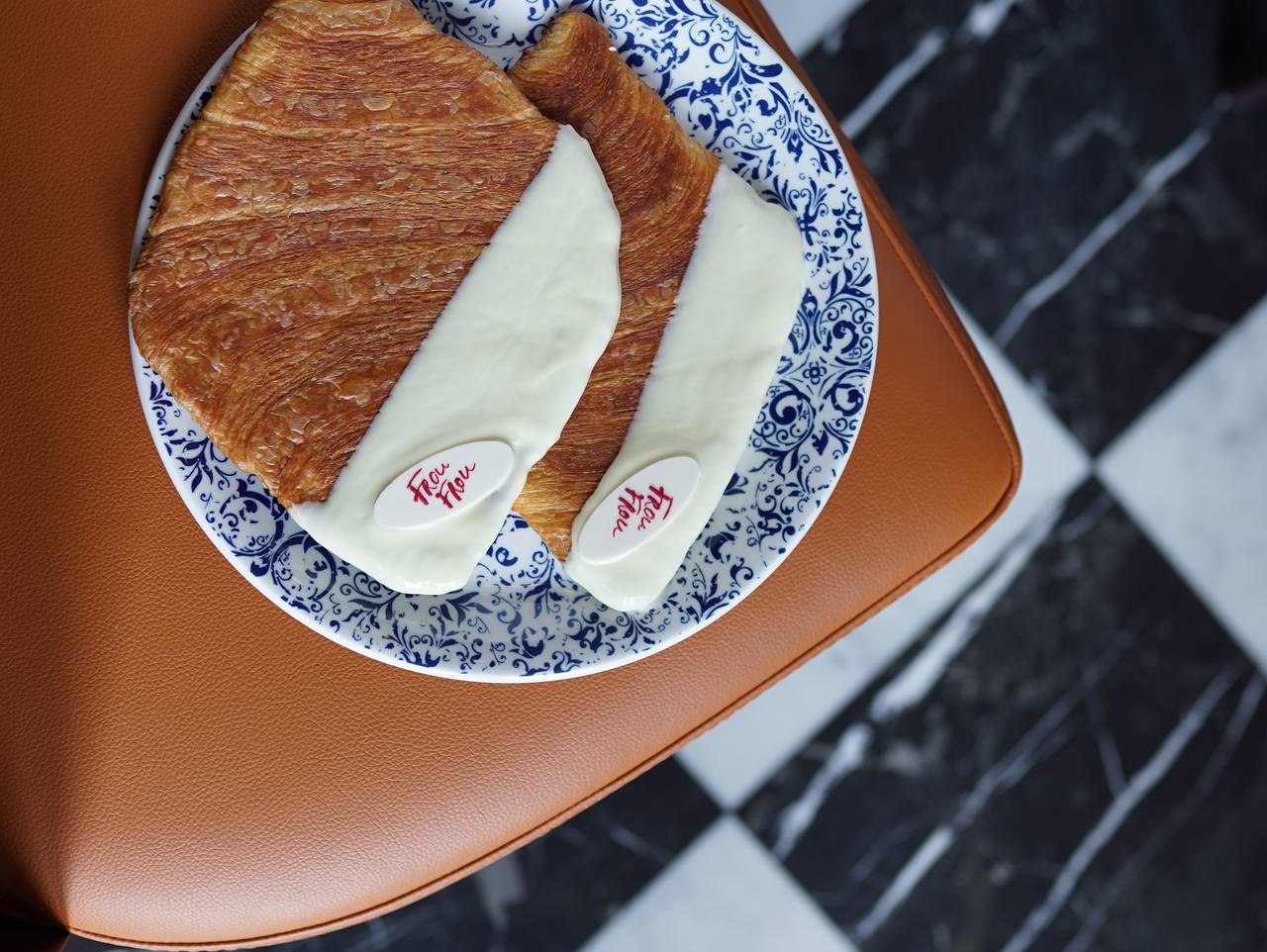 У французькому ресторані Frou Frou радять розпочати день з флет-круасанів з власної пекарні, які мають ідеальну плоску форму та занурюються в білий бельгійський шоколад. Вони смакують з філіжанкою запашної кави або гарячого шоколаду. Коштує таке задоволення 220 грн.