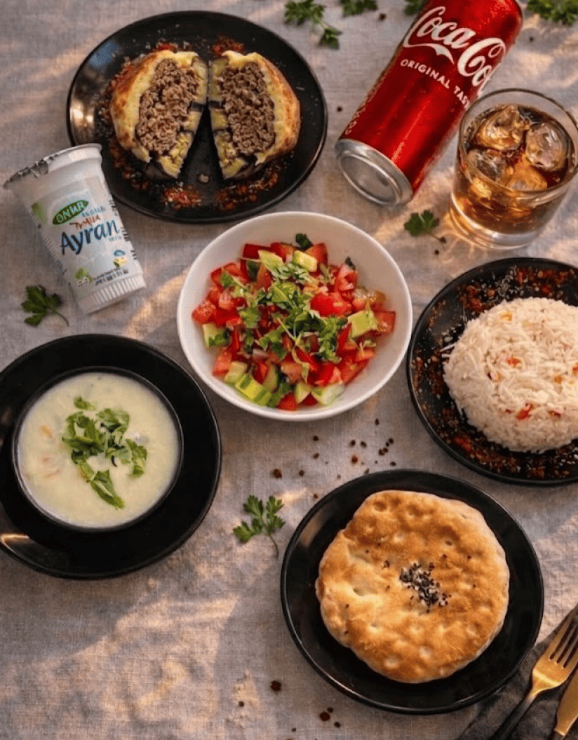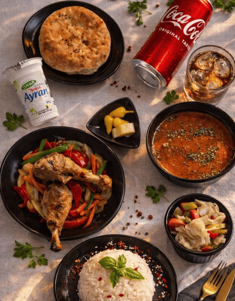 У меню закладу є великий вибір кебабів, традиційні закуски зі спеціями, свіжі салати та справжній турецький айран. Бізнес-ланч коштує 250 грн, розширений обідній сет — 350 грн.
