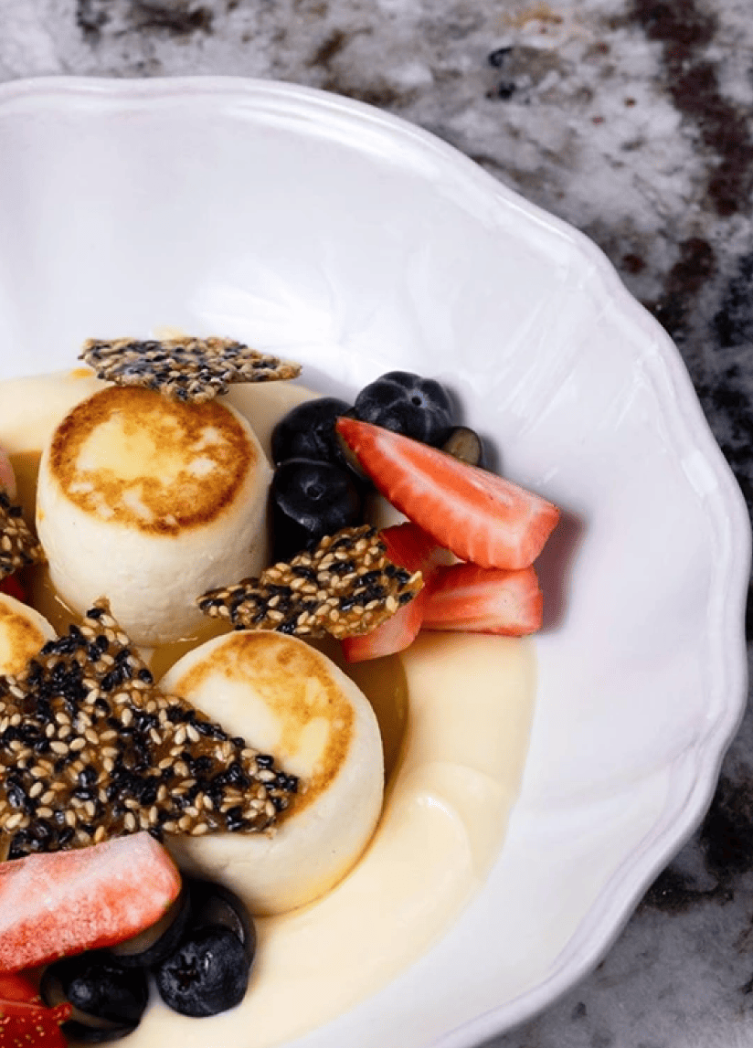 • Домашні сирники із свіжими ягодами — 355 грн;