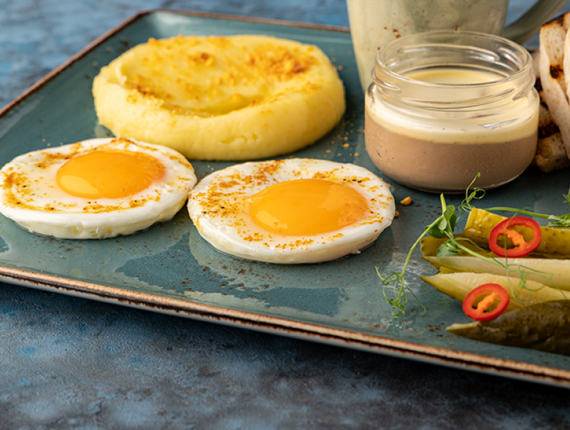 • Яєшня з беконом та ковбасками гриль — 402 грн;
