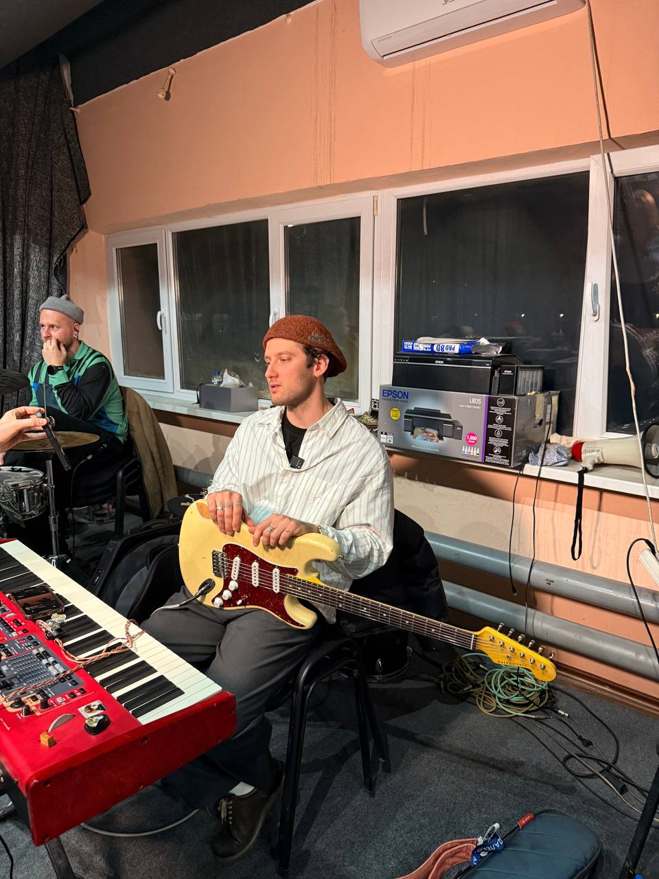 Під час підготовки до виступу графік команди шалений: від ранкових ефірів до репетицій пізнього вечора. І, попри це, атмосфера на зустрічі надзвичайно тепла. Доки чекаємо на хлопців, слухаємо, як вони грають. Танцюємо й захоплюємося віддачею музикантів.