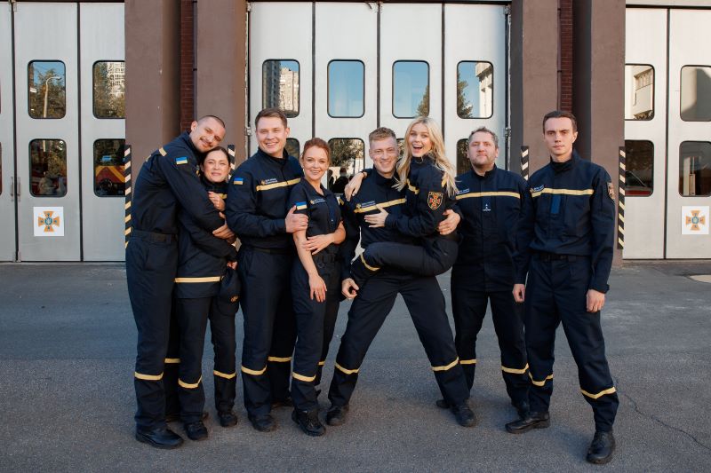 Я з таким теплом згадую це знімання! Я цей проєкт собі наче наврочила, бо дуже поважаю працівників ДСНС. Вважаю, що вони недооцінені в нашій країні, і те, що ми зняли про них 16-серійний фільм, дуже важливо. Вони для мене — герої без зброї, хоча і не люблять, коли їх називають героями. Але вони такі, бо рятують людей і тварин іноді в дуже страшних ситуаціях: дістають із-під завалів, виносять із вогню. Під час фільмування весь час всі питали: "Де ж та Катя?" А Катя знову з ДСНСниками тріщить. Ми розмовляли про все-все, фотографувались — у мене в Instagram повно тих фотографій. Пам'ятаю, спитала в одного рятівника, скільки він у професії — виявилось, 36 років: починав з водія і дослужився до якогось звання. І весь час рятує все живе. Це просто нереальні люди! А ще в них класний чорний гуморок, як я люблю.