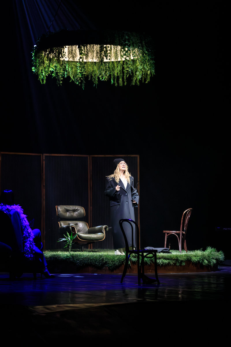 Далі з текстами працювали редактори Наташа Скорикова й Сергій Гаврилов: вони надали матеріалу структуру, драматургію, створили каркас. Потім Ігор Френкель перетворив ці історії на повноцінний сценарій, що став базою для моєї акторської роботи й режисерського бачення Олени Коляденко. Я дуже хотіла, щоб режисеркою була саме вона. Для мене було важливо, аби вистава пролунала через її оптику, через те, як Олена бачить життя, як вона відчуває красу та створює естетику. Разом із Дашею Білою вони вибудували сценографію, яка дуже точно передала характер і атмосферу вистави. Зокрема, візуальні образи, як-от зелена трава — це теж її робота.