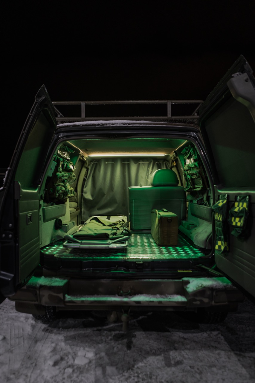 Перші кейсеваки ми робили ще у 2022 році на базі Patrol, Land Cruiser, Pathfinder або пікапів. Ми утеплювали салон, ставили автономний обігрівач і світло, щоб машина була теплою і можна було працювати всередині.