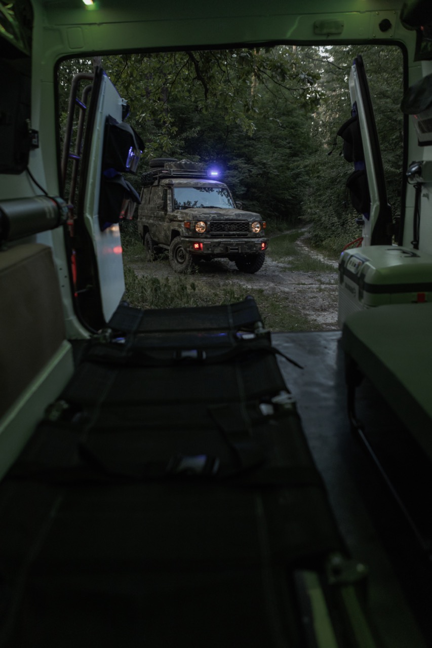 Ми почали з Patrol для "Азову", потім перейшли на 150-ті "Крузаки", але зараз ідеальна платформа — Toyota Land Cruiser 78. У них простий дизельний двигун, який легко ремонтувати, проста підвіска та великий салон для роботи медиків.