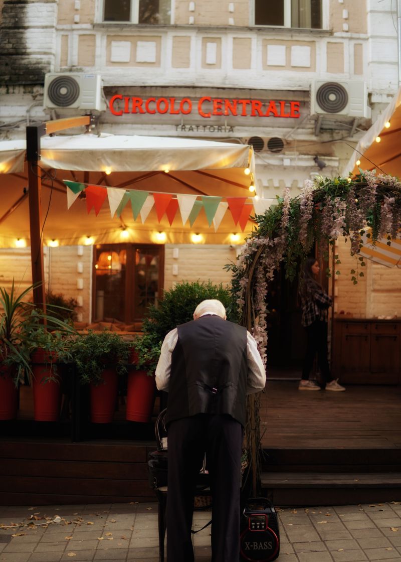 У Києві музиканти часто грають біля Золотих воріт, там навіть черга своя. А в мене вийшло інакше: я запитав у адміністрації кафе, чи можна мені грати тут, і вони дозволили. Відтоді минуло вже чотири роки — стільки існує цей заклад, і стільки ж я тут граю.