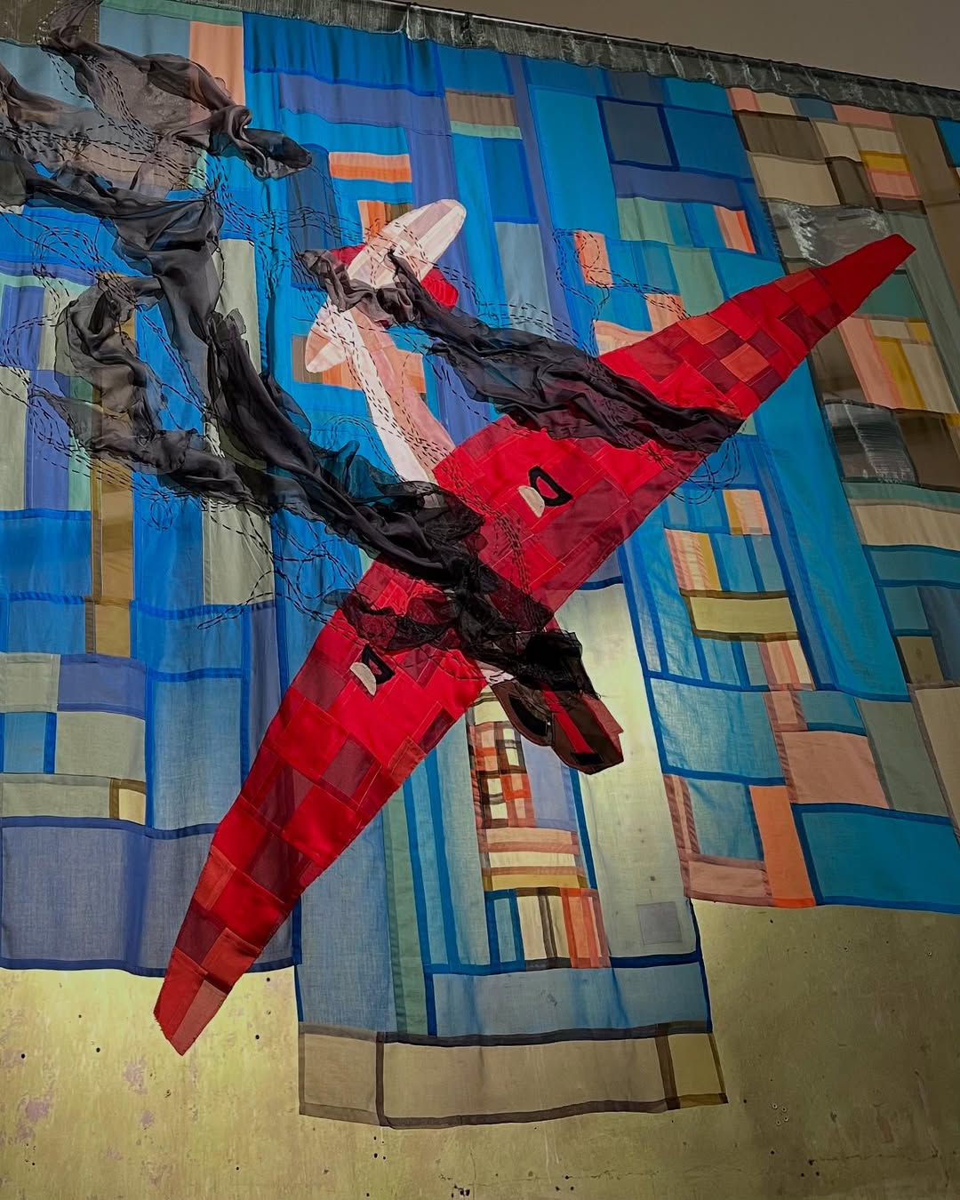 Серед них — текстильні композиції, зроблені для нереалізованої у The Naked Room виставки 2022 року, персональні твори Світлани Селезньової, а також монументальне текстильне панно Дарії, присвячене підриву Каховської дамби та його наслідкам.