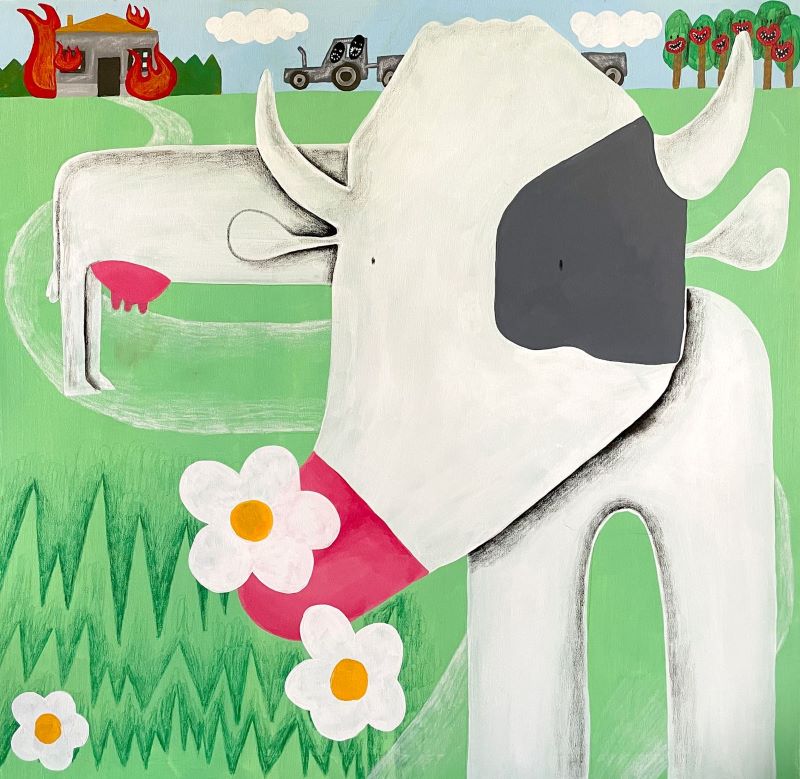 На цій виставці робіт Саші Луньової можна побачити яскравий наївний живопис із сюрреалістичними сюжетами на межі реальності та сновидінь.
