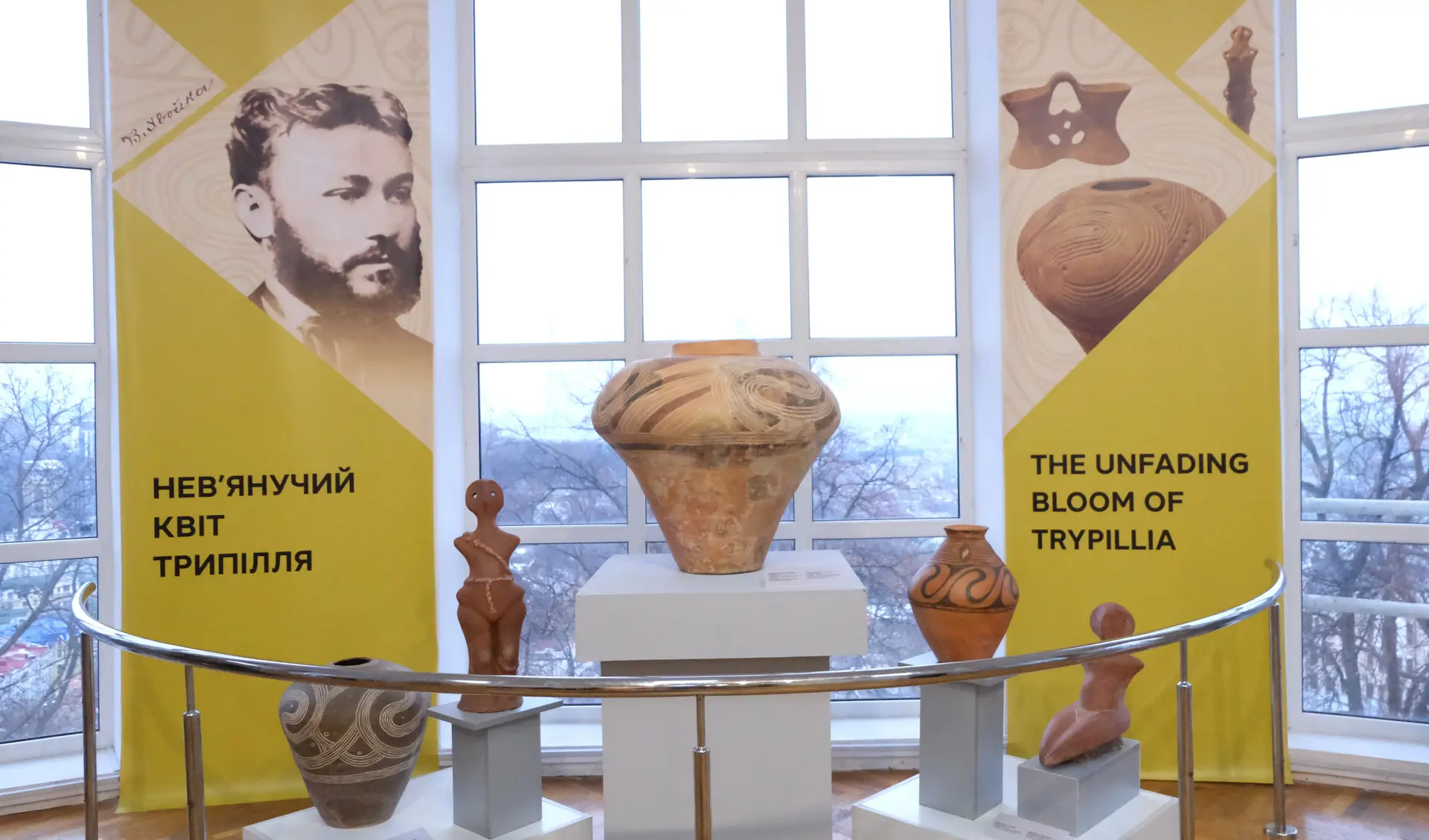 Виставка презентує близько 50 оригінальних керамічних виробів трипільської археологічної культури з колекції Національного музею історії України, зокрема з розкопок Вікентія Хвойки, а також кераміка, панно, комплекти вбрання, повстяний килимок тощо, створені сучасними майстрами за мотивами Трипільських форм та орнаментики.