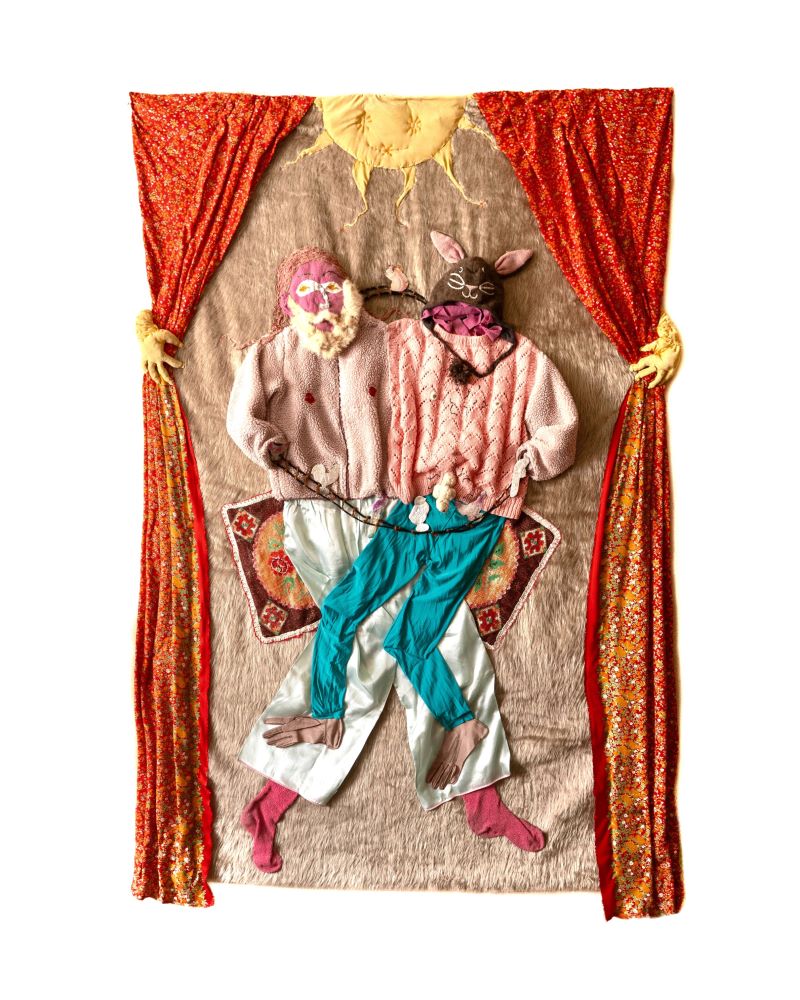 Серія робіт "Час вилизує своїх дітей" починалася як щоденник воєнного вигнання. Скульптури, представлені на виставці, створені з фрагментів побуту, покинутих і знайдених речей — насамперед, з власного одягу автора.