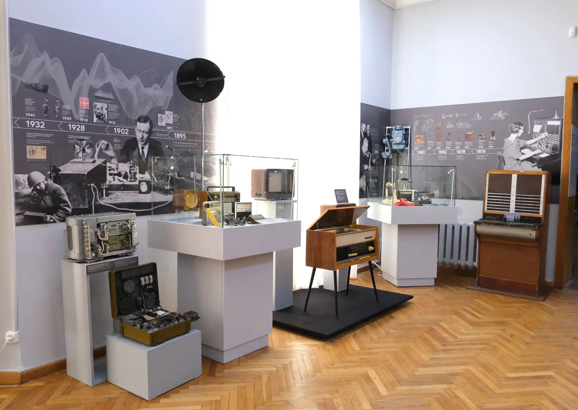 В експозиції представлені старовинні листи, листівки, радіоприймачі, телефони від початку XX ст. й до наших днів, обладнання перших телефонних станцій, телеграфні апарати IX ст., таксофон, що стояв у Києві на Подолі у 1990-х роках, одні з перших комп’ютерів та багато іншого.