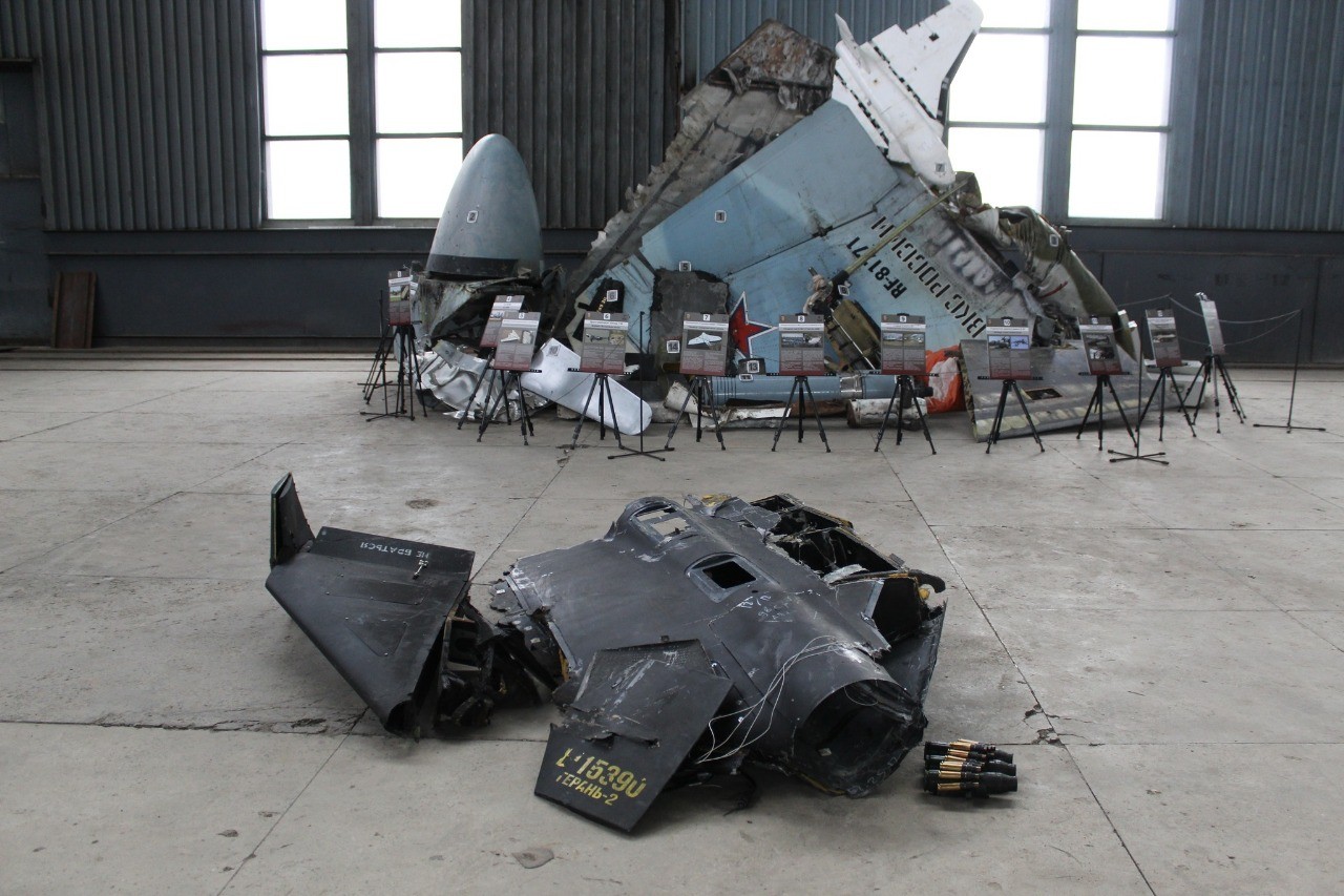 Серед експонатів — уламки дослідного ударного дрона С-70 "Охотнік", яким так пишається наш ворог, рештки дрона-камікадзе Shahed-136 й БпЛА "Гербера", збиті стратегічні крилаті й тактичні керовані ракети, балістична ракета 9М79М для тактичного комплексу "Точка‑У", а також кіль літака Су-30, СМ та підвісна система катапультного крісла й парашут із літака Су-35С.