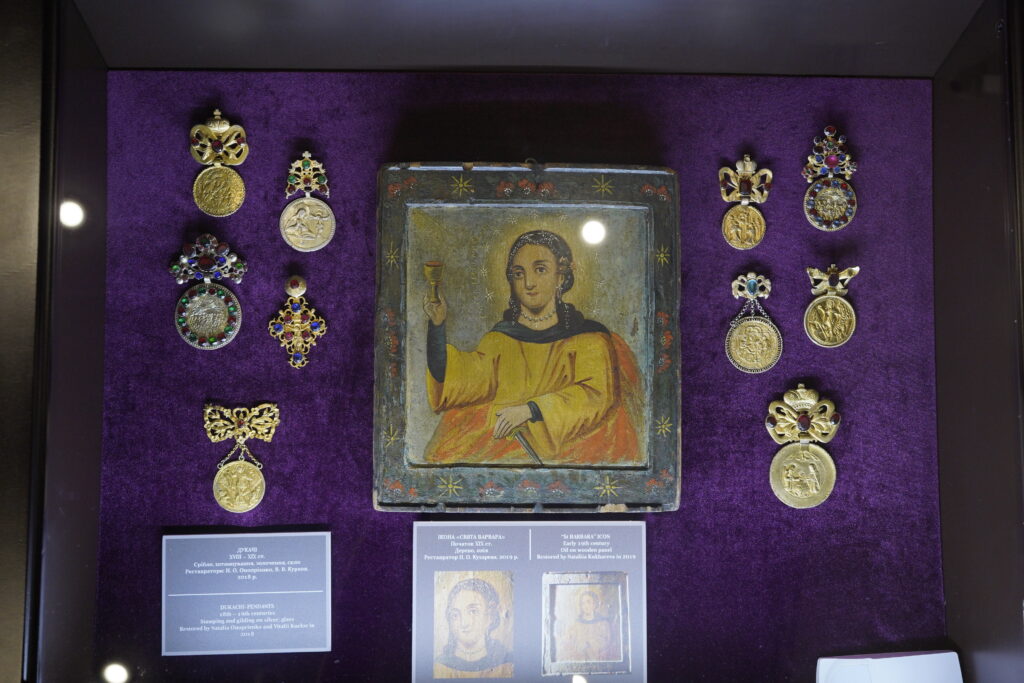 Її експонати — понад сотня унікальних мистецьких творів XVI–ХХ століття, відновлених художниками-реставраторами: старовинні українські ікони, хрести, срібне церковне начиння, літургійні тканини та стародруки.