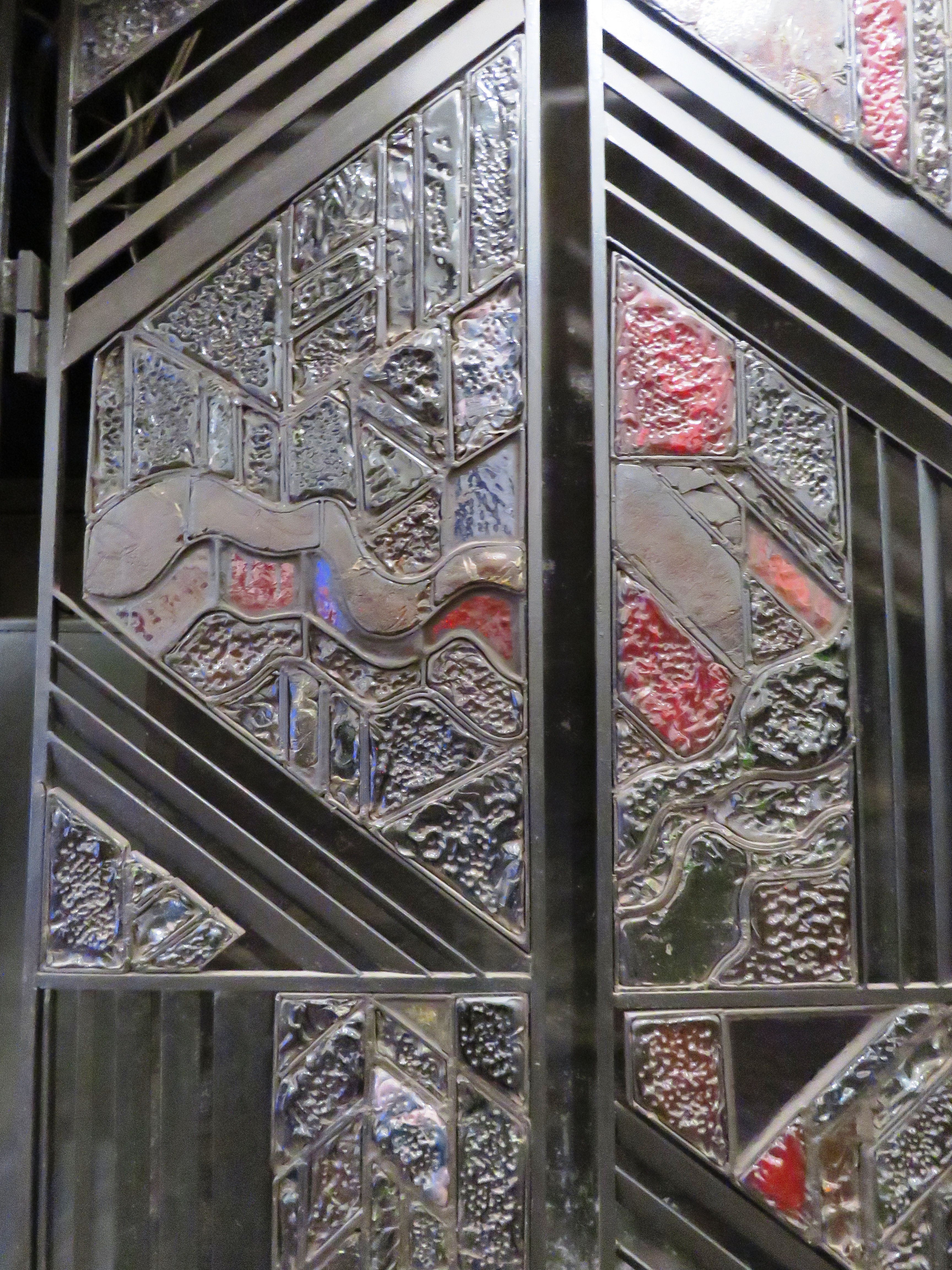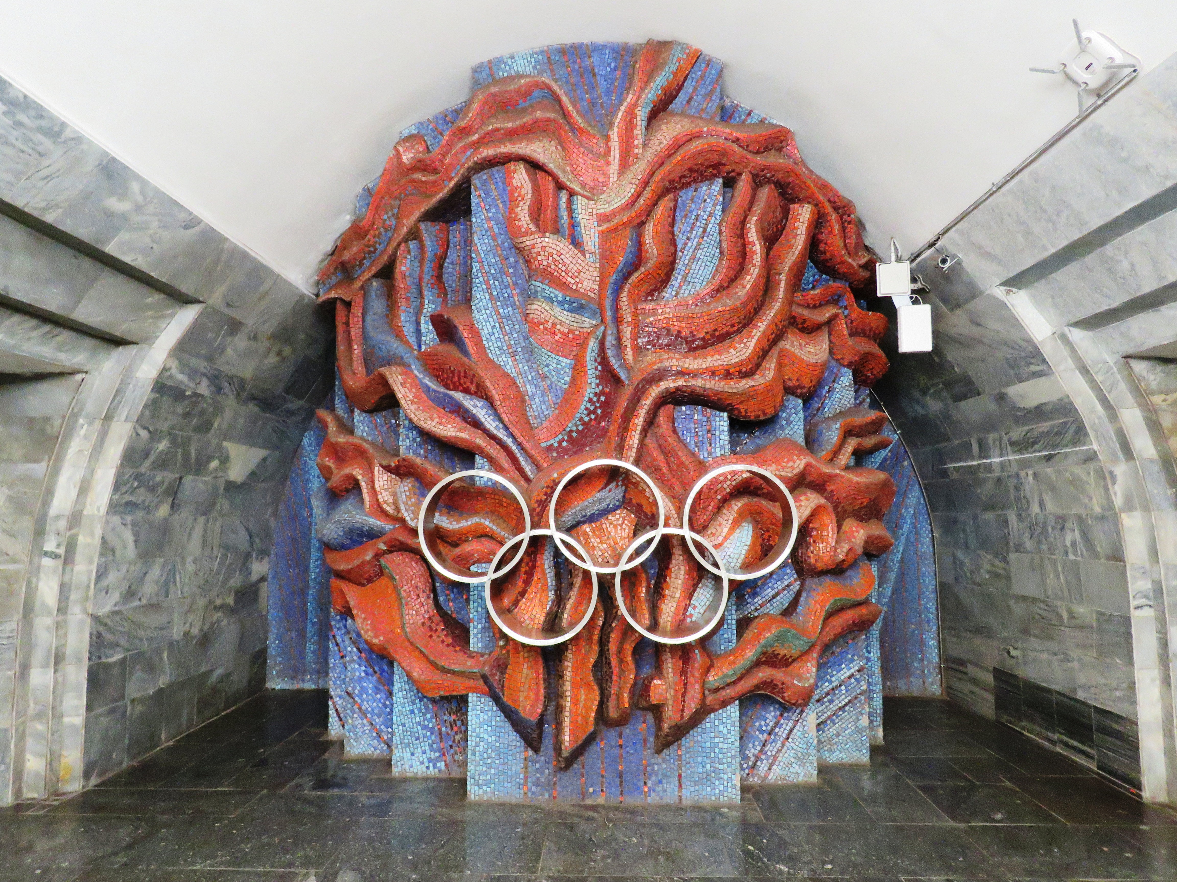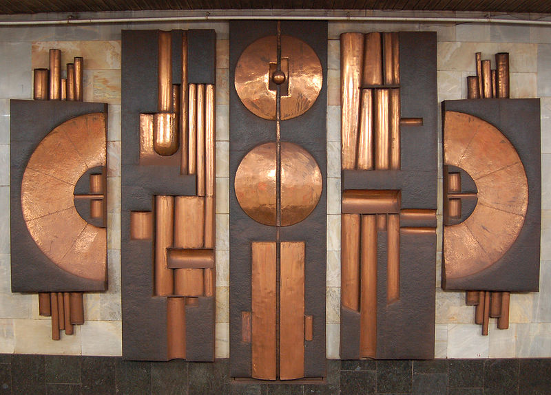 Проте залишилося дещо дійсно ефектне і дивовижне (подібної роботи більше ніде немає): пречудовий рельєф біля ескалаторів (зі стіни, закручуючись вихором, він переходить на стелю).