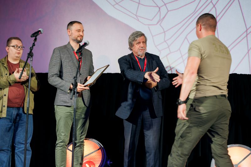Ну і, власне, розпочалося нагородження лауреатів фестивалю — першими з них стали переможці конкурсу від MEGOGO — MEGOGO AI FILM FEST — ініціативи, що об'єднує режисерів та митців, які експериментують із ШІ у кіно. Тут Гран-прі здобув Євген Чернишов за роботу "Сеанс у психолога".