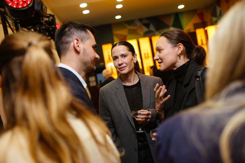 Якщо відкриття ОМКФ-2025 відбулося у просторому КВЦ "Парковий", то церемонію закриття вирішили влаштувати в затишному, проте не такому просторому кінотеатрі "Жовтень". Тому зіркові гості поспілкувалися, напевно, з усіма колегами, присутніми на заході. Акторка Анастасія Карпенко, наприклад, спілкувалася з режисером Павлом Остріковим: