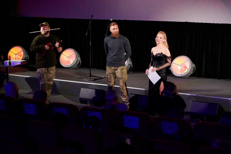 Зал розчулився так, що по закінченню перфомансу піднявся й оваціями вшанував тих, хто боронить нас.