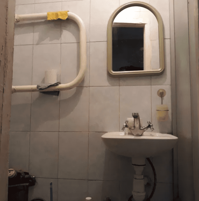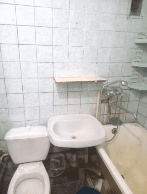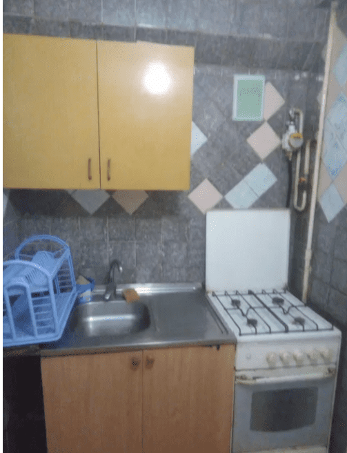 Ще один варіант — гостинка на Борщагівці. Господарі зазначають, що у цій квартирі зроблений косметичний ремонт. З меблів є старий диван, крісло, шафа для одягу, що розміщена в коридорі. На кухні є газова плита й кухонна шафа для посуду, а також старий холодильник і стіл. Стан санвузла бажає кращого. Тут навіть речі випрати страшно, не те що прийняти ванну.