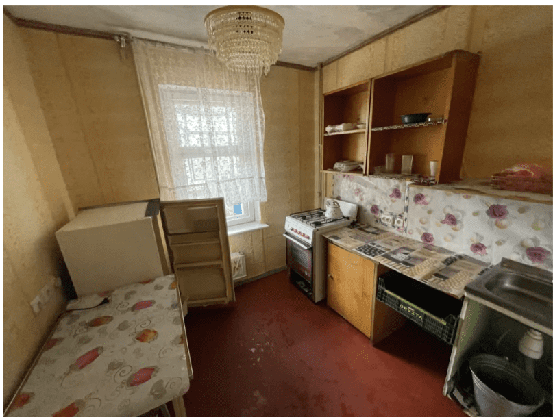 Щоправда, опубліковані світлини свідчать про протилежне. У кімнаті є ліжко, однак виспатися на ньому навряд чи вийде. Також є два стільці й старий комод. Такого у коморі в бабусі вже напевно не знайду. На невеличкій кухні втиснувся стіл і холодильник, який, ймовірно, залишився у спадок із радянського минулого. Ще є газова плита, кілька поличок і умивальник. А от світлин із санвузлом, на жаль, немає.