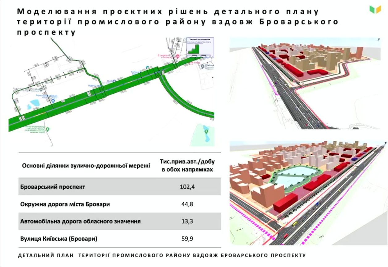 Транспортне моделювання, зроблене "Київгенпланом", показало, що для нового ЖК на Броварському проспекті потрібно збудувати дві дворівневі розв'язки. Одна з них буде на перетині з вулицею Київською та Окружною дорогою у Броварах (вже закладена в Генплан міста), а друга — на перетині з дорогою, що веде до Зазим'я.
