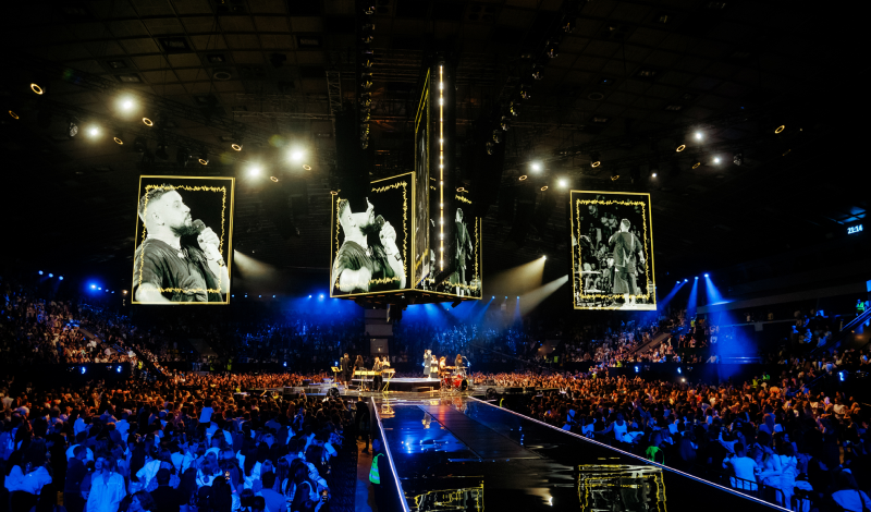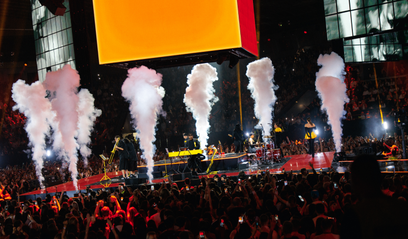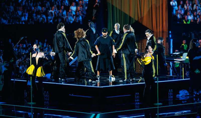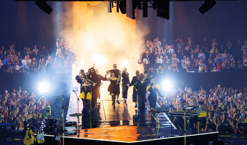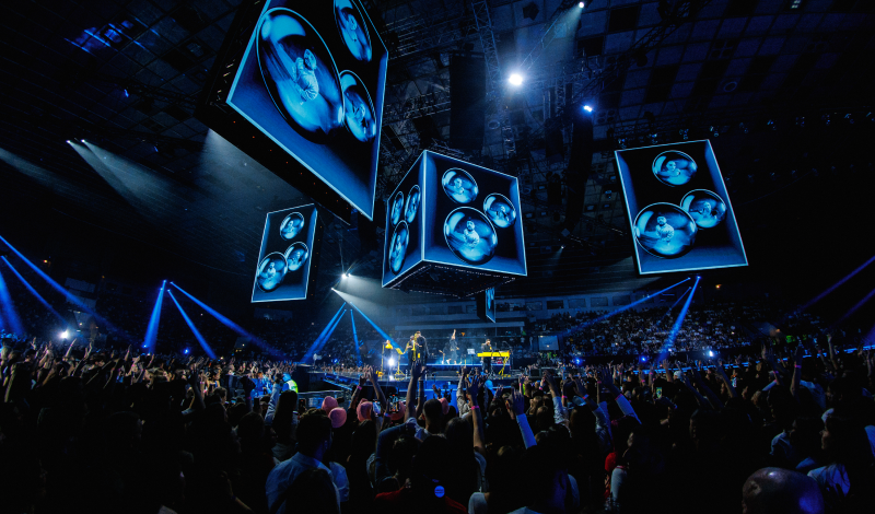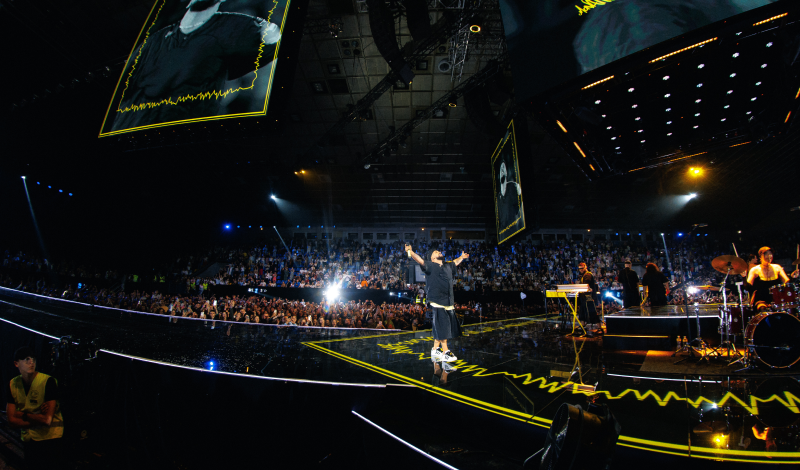 На глядачів чекало видовищне шоу: 360-градусна сцена у самому центрі Палацу спорту, інтегрована бігова доріжка у подіум-прохід (catwalk), плунжер, масштабні декорації та величезні екрани, які створили повне занурення у режисуру концерту.