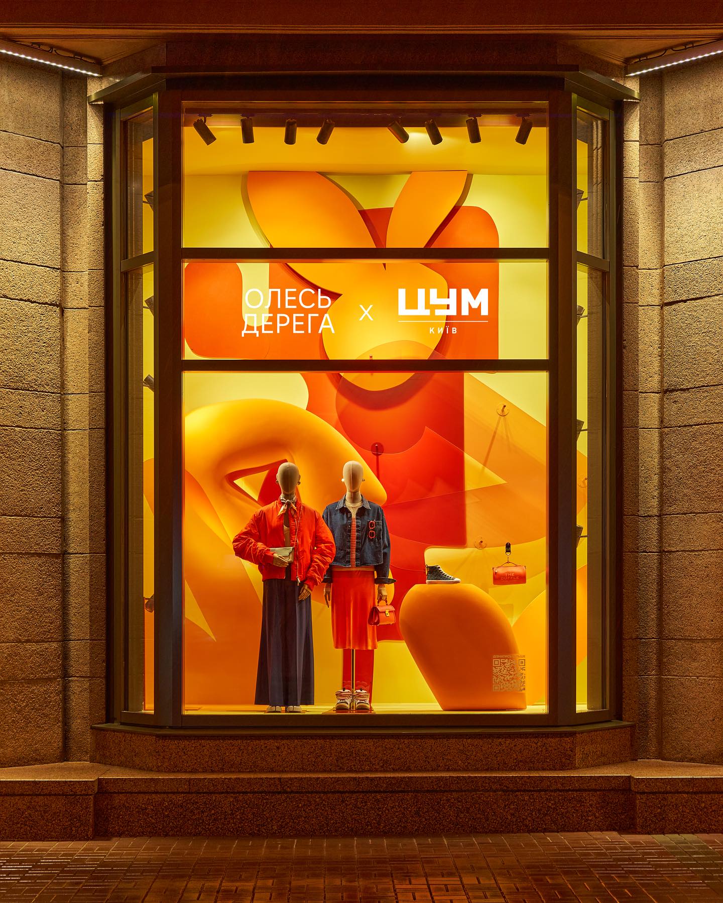 Нові вітрини створені у співпраці з молодим львівським художником Олесем Дерегою. У такий спосіб ЦУМ продовжує популяризацію сучасного українського мистецтва та підтримку молодих українських художників.