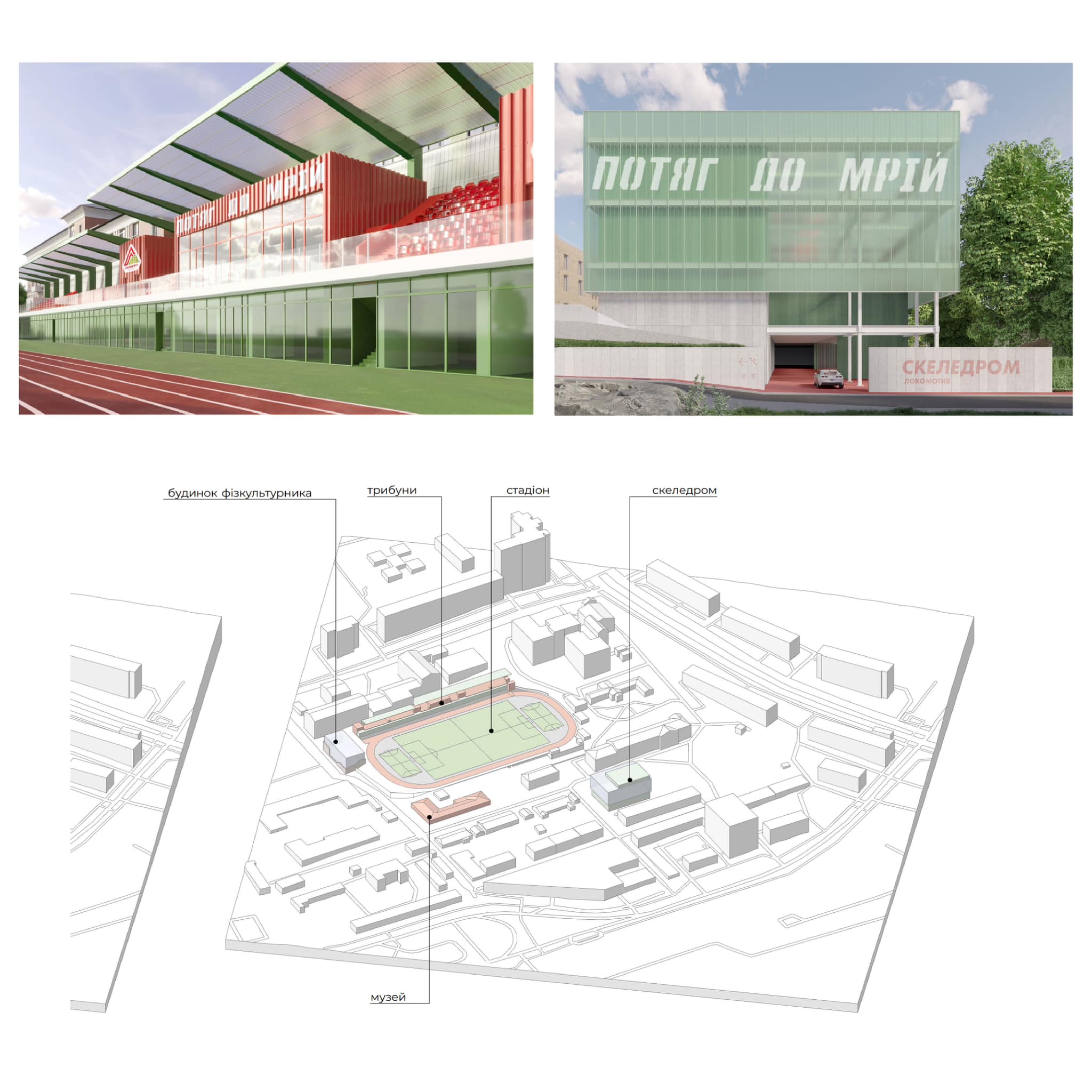 На місці зруйнованого російською ракетою стадіону "Локомотив" у Солом'янському районі побудують багатофункціональний центр розвитку залізничників "Локо Сіті". Укрзалізниця представила архітектурну концепцію, яку обрали на відкритому конкурсі.