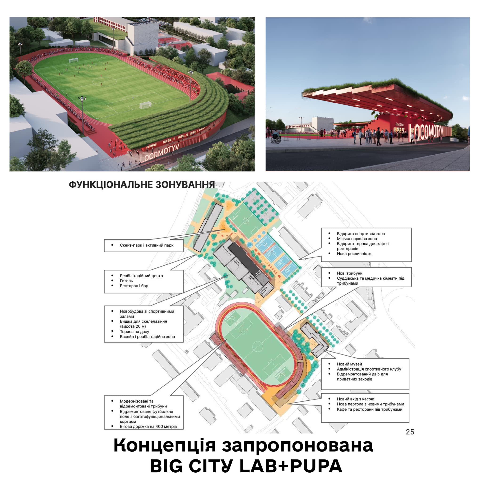 В Укрзалізниці розповіли, що конкурс на відновлення стадіону стартував у липні цього року. Компаніям, які хотіли взяти в ньому участь, дали доступ до об'єкта, продемонстрували руйнування та всі локації, включені в план розвитку комплексу, розіслали відповідне завдання щодо розробки концепції.