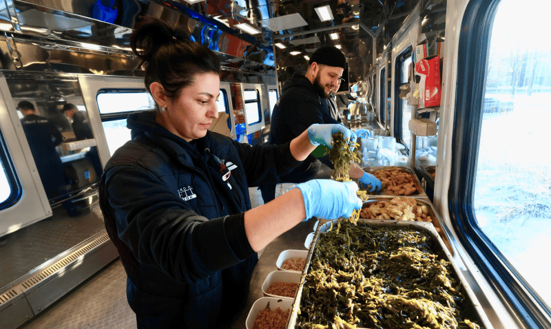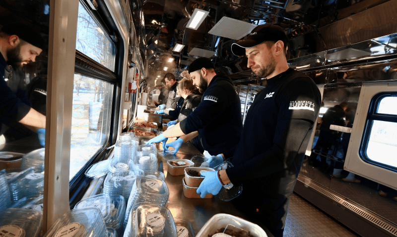 Голова ОВА розповів, що поїзд-кухня — це повністю автономне рішення з потужністю до 10 тисяч порцій на добу. Повноцінне меню включає перші та основні страви, салати, фрукти. Водночас в регіоні працює мобільна кухня — благодійний фудтрак "Їжа без кордонів", який готує близько 10 тисяч порцій на добу.