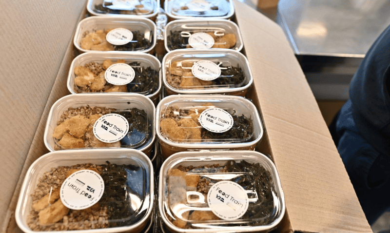 За підтримки "Укрзалізниці" та Фундації Говарда Г. Баффета на Київщині розпочав роботу автономний потяг-кухня, який працює у Бучанському районі. Він готує готові порції гарячої їжі та організовує їх подальшу доставку для Бучі, Ірпеня, Гостомеля, Бородянки, Дмитрівки, Немішаєве та Білогородки. Також у розгорнутих наметах обігріву поруч мобільних кухонь можуть пообідати гарячою їжею, випити чаю та погрітися ті, хто цього потребує.