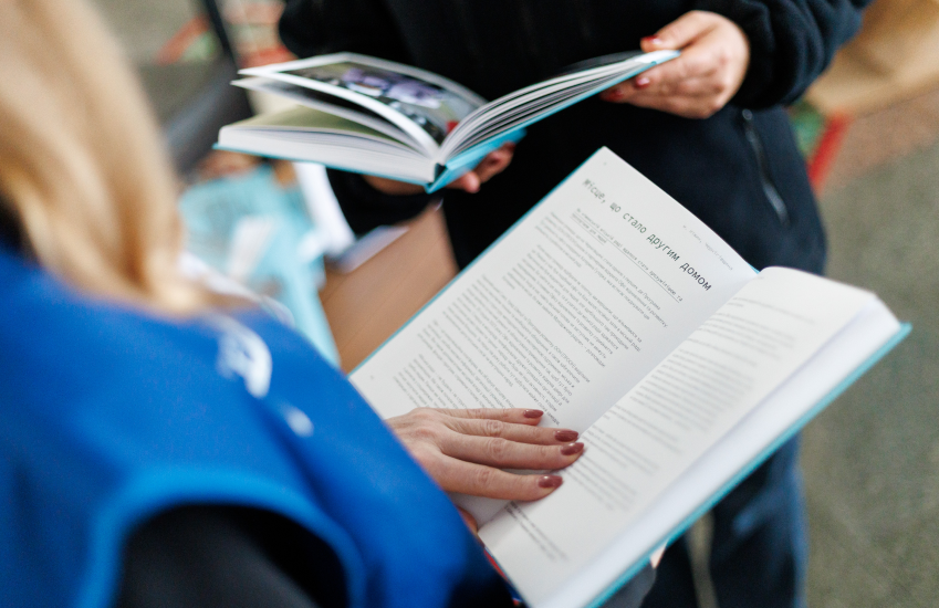 На Центральному залізничному вокзалі Києва 9 жовтня відкрилася виставка "Читальня однієї книги", присвячена виданню "Люди на своєму місці". Це збірник 60 реальних історій про українців, які попри всі виклики війни щодня зберігають людяність і стійкість.