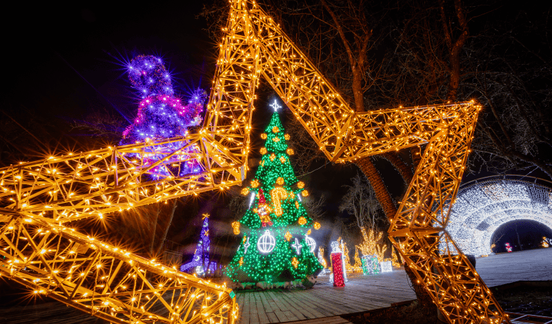 Найяскравіша локація на "Зимовій країні" — Парк світлових інсталяцій від Люм'єр. Тут буде 200 казкових фігур: 20-метровий тунель із ліхтариків, величезна резиденція гнома, ялинка, гігантський чарівний капелюх та безліч фотозон.