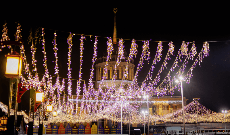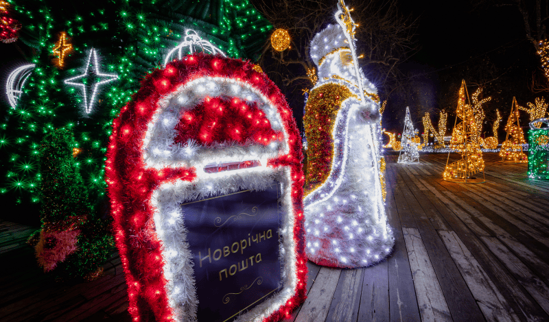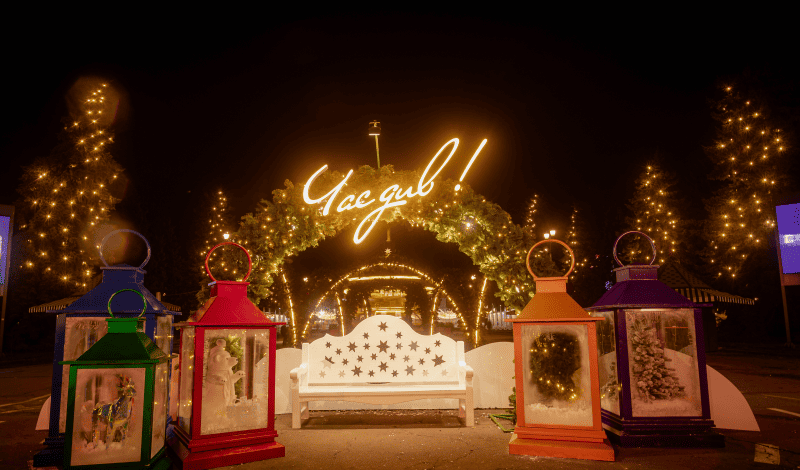 Оранжерею на ВДНГ прикрасили святковими вогнями, а простір наповнений приємним ароматом живих рослин. Окрім цього є інтерактивна частина: фотоквест із пошуку чарівних жителів, зони для читання, гри в шахи та навіть написання листів Святому Миколаю або Санті, а також інтерактивна виставка запахів Різдва.