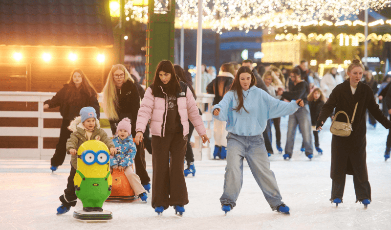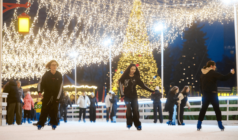 Ковзанка — це місце, без якого не минає жодна зима на ВДНГ. Цього року її розширили до 3000 квадратних метрів — ще більше простору для вільних рухів, стрімких віражів і чудово проведеного часу. Також додали фотозону з новорічним потягом і казкову башту з годинником посередині льоду.