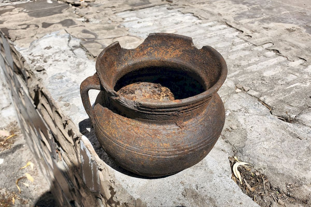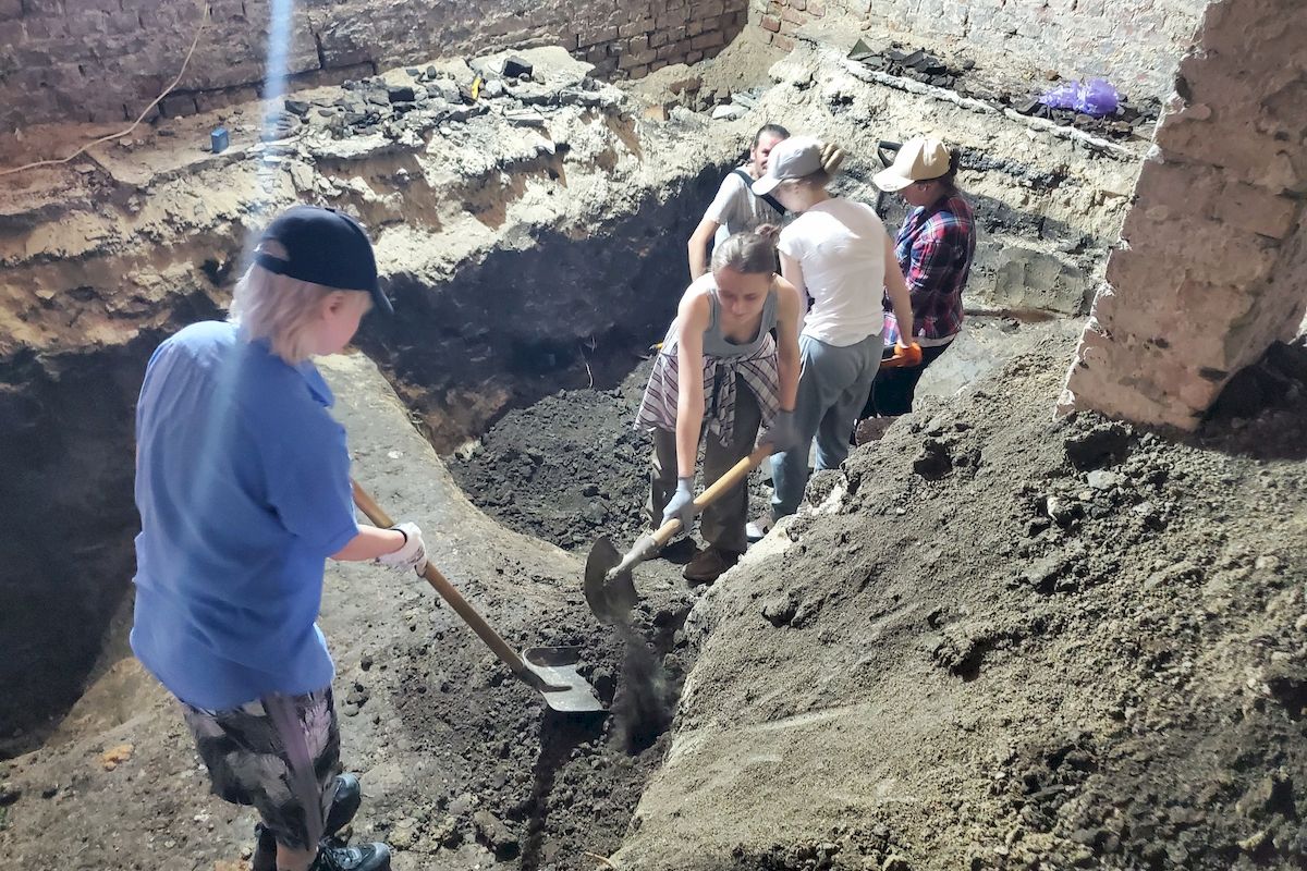 Під час цих досліджень розбили бетонну підлогу на цокольному поверсі будинку, яка з'явилась там за радянських часів. У землі, під будинком, виявили майже цілий старовинний глечик і ще два розбиті.