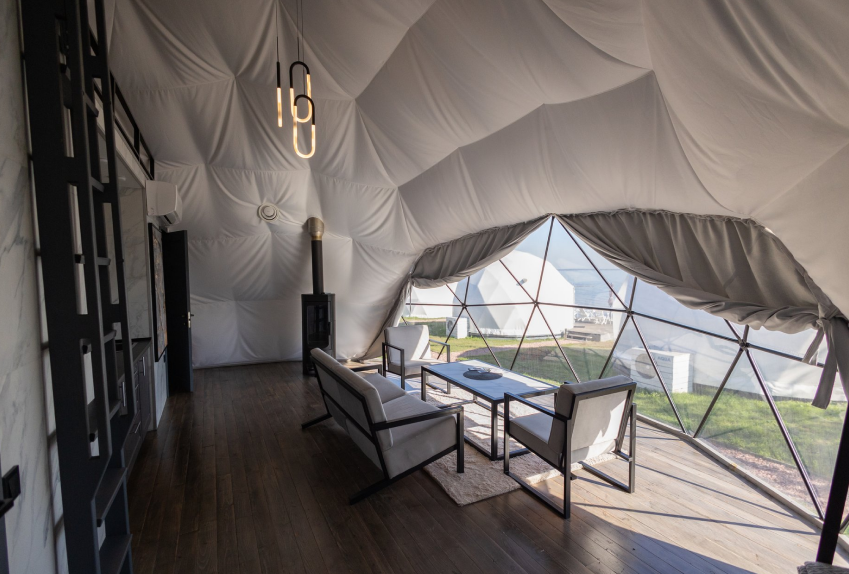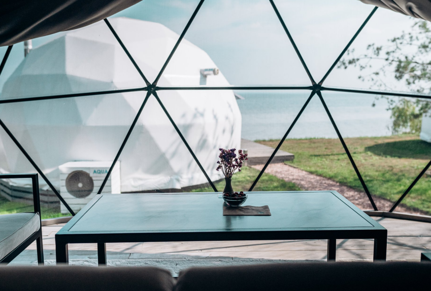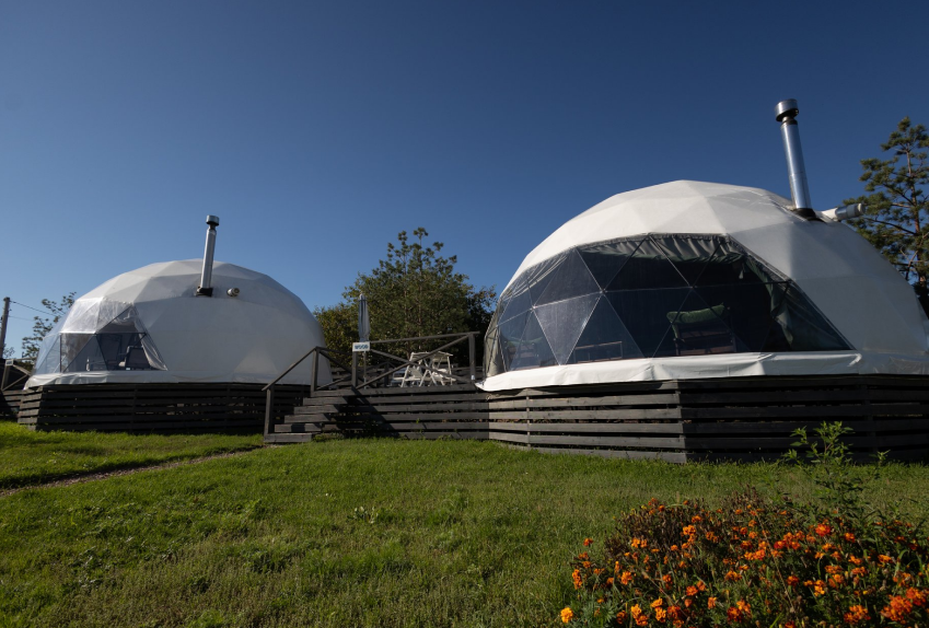 Гості мають можливість прокинутися у затишному куполі з унікальним краєвидом на Київське море. Пропонується вісім куполів, кожен з яких присвячений окремій стихії природи.