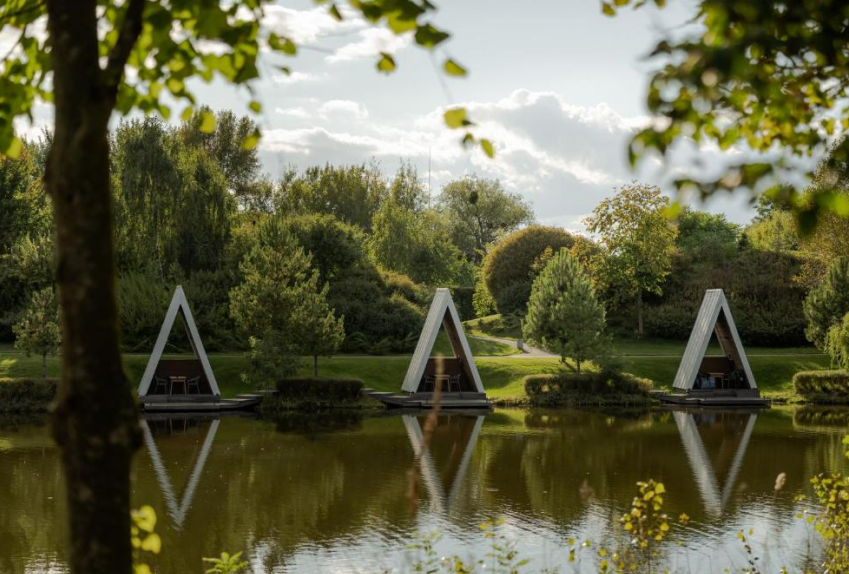 На території є 14 будиночків: шале та Aframe — скандинавського типу, оформлені у традиційному стилі, з дерев'яними стінами та великими вікнами, які відкривають краєвид на озеро. Кожен з них по-своєму унікальний: з лазнею, джакузі або чаном.